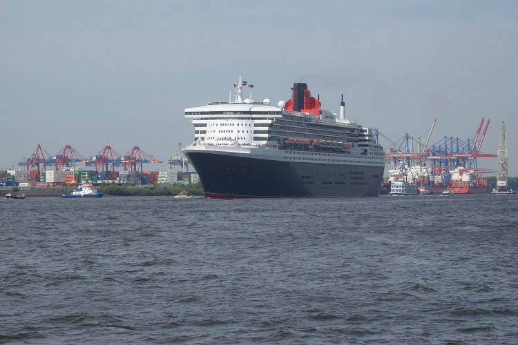 Die "Queen Mary 2" auf dem Weg in den Hamburger Hafen