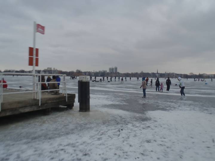 Zugefrorene Außenalster am Anleger Rabenstraße