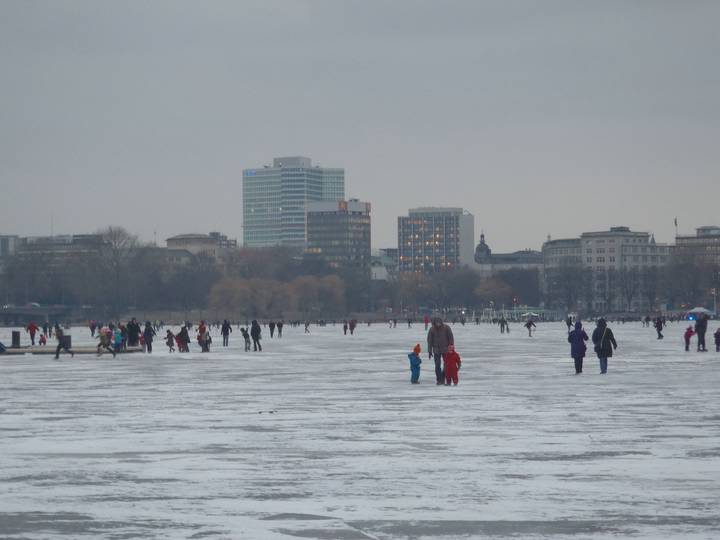 Zugefrorene Außenalster mit Blick Richtung Alsterufer/Alsterglacis