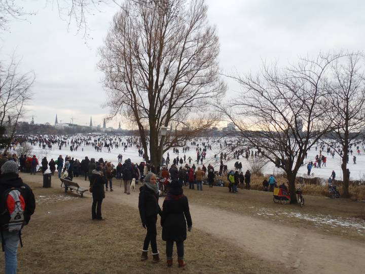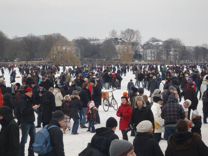 Außenalster / Schwanenvik, 2. Tag des offiziellen Alstereisvergnügens 2012 |