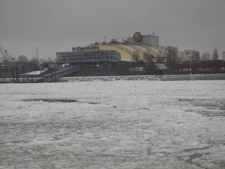 Musical-Theater "Der König der Löwen" / Elbe (Blick von den Landungsbrücken) |