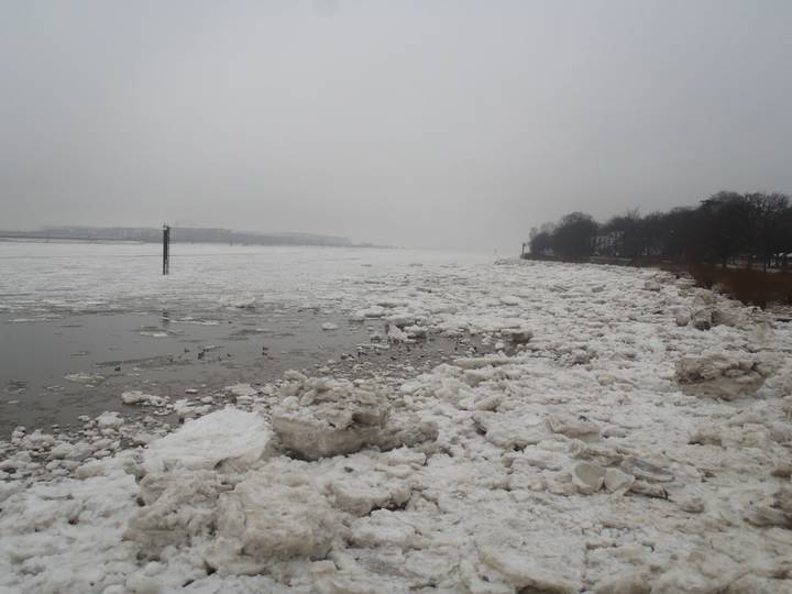 Eisschollen am Strand beim Anleger Teufelsbrück