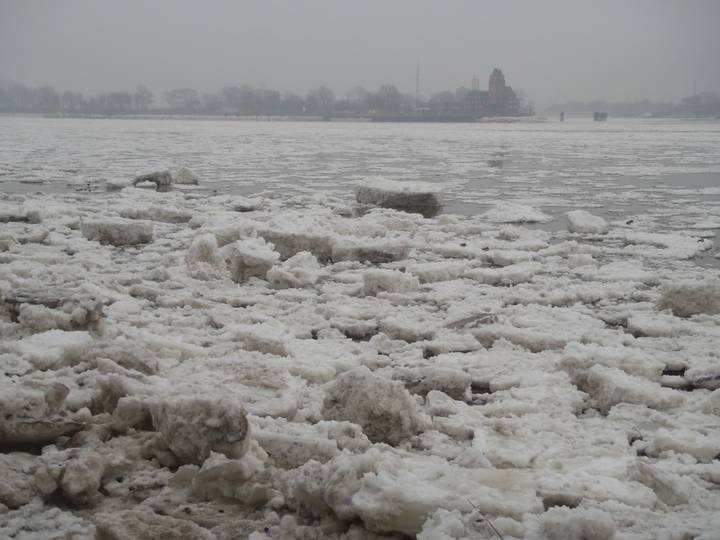 Eisschollen auf der Elbe / Elbewanderweg gegenüber von Finkenwerder