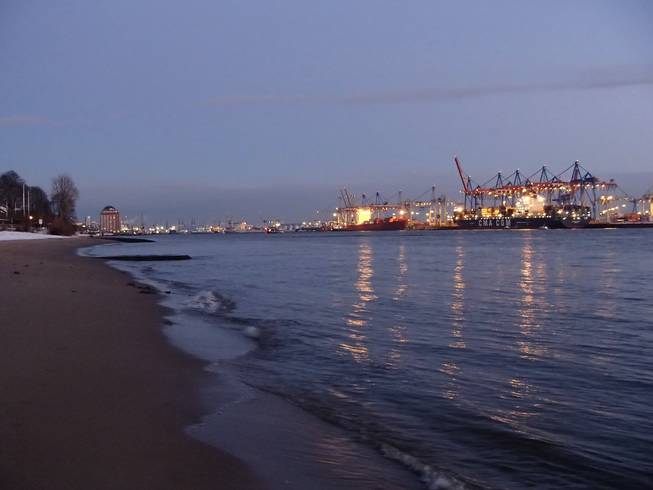 Am Strand von Övelgönne mit Blick auf den