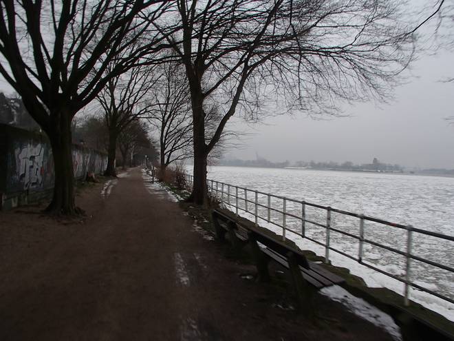 Auch -1°C können so bitterkalt sein, wenn man an der Elbe gegen den brutalen Ostwind anlaufen muß.