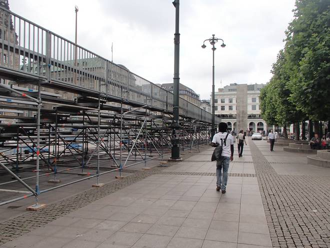 Rathausmarkt Aufbau der Tribünen für den Hamburg Triathlon |