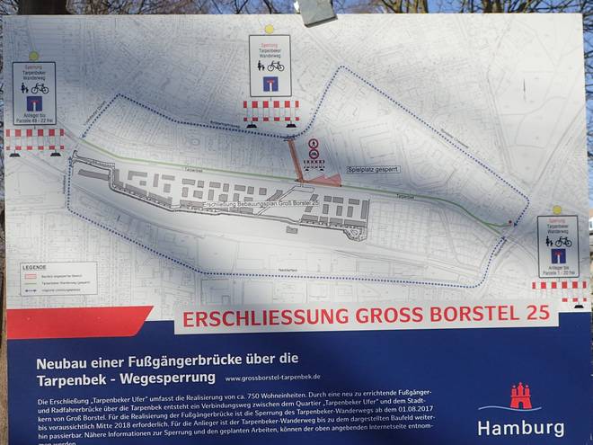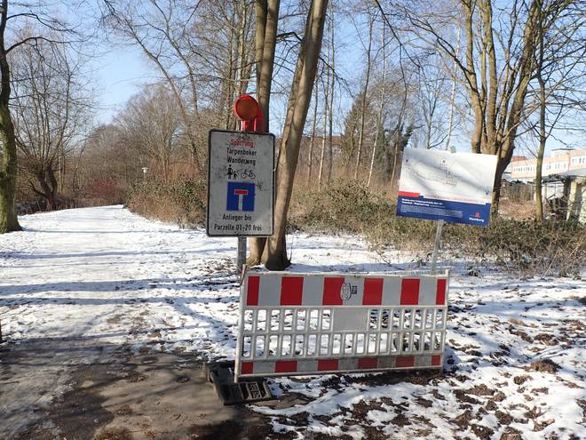 Tarpenbekwanderweg Wegen Bauarbeiten war hier seit August 2017 gesperrt. |