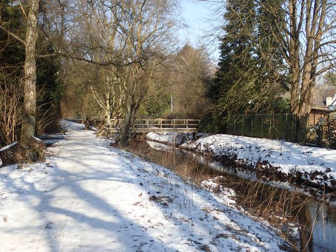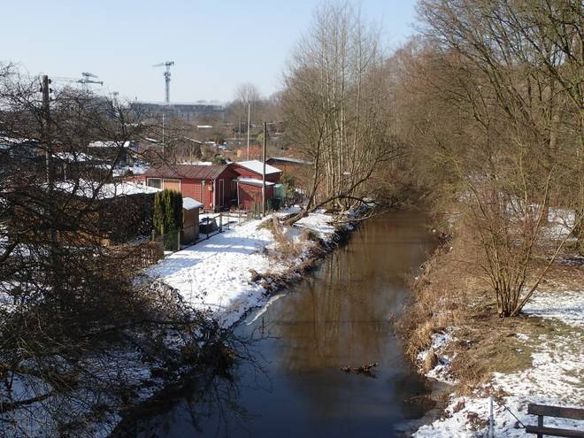 Tarpenbek Rosenbrook 11 Monate für den Bau einer Fußgängerbrücke über diesen Fluß. Enorme Leistung. |