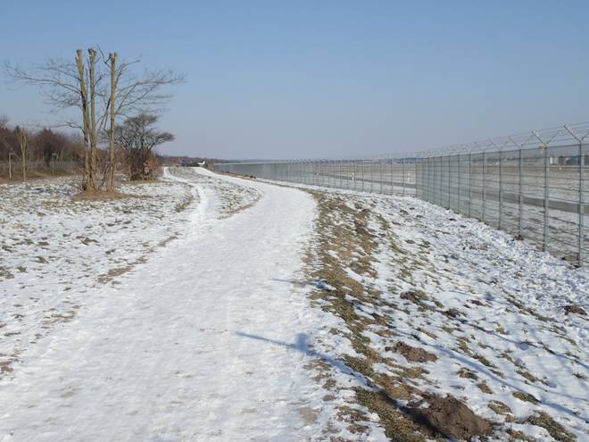 rund um den Flughafen bei -5°C. Teilweise etwas glatt, aber insgesamt doch