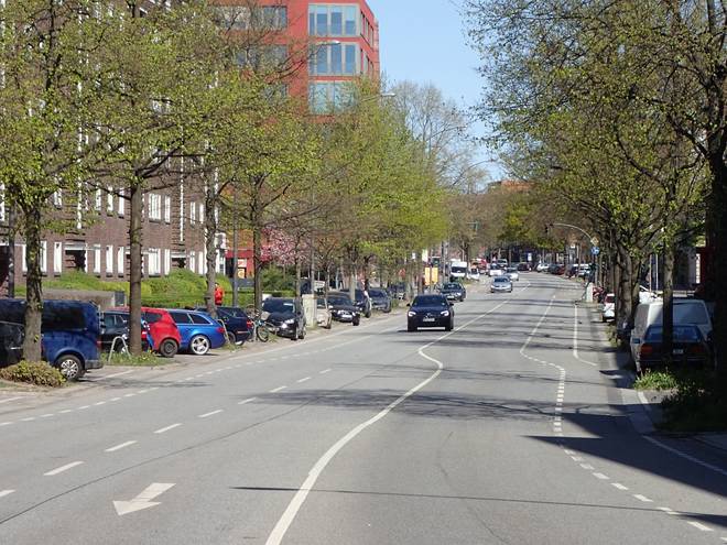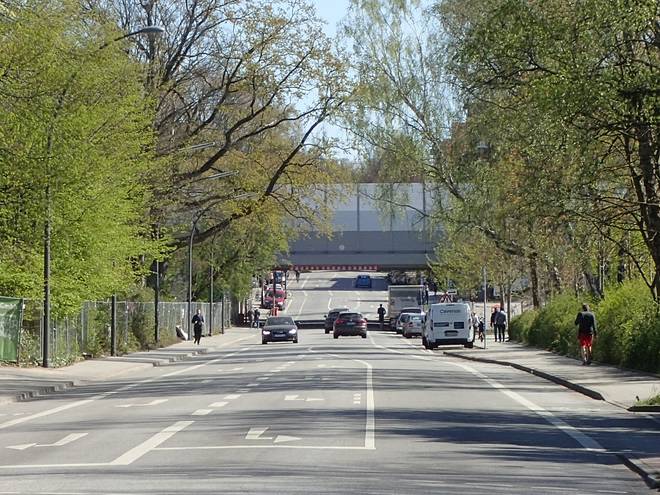 Tarpenbekstraße Lenhartzstraße Die Bundesstraße 5 und 433 sowie der Ring 2 treffen hier aufeinander und ich laufe quer über die Kreuzung. Ein echt cooles Gefühl. |