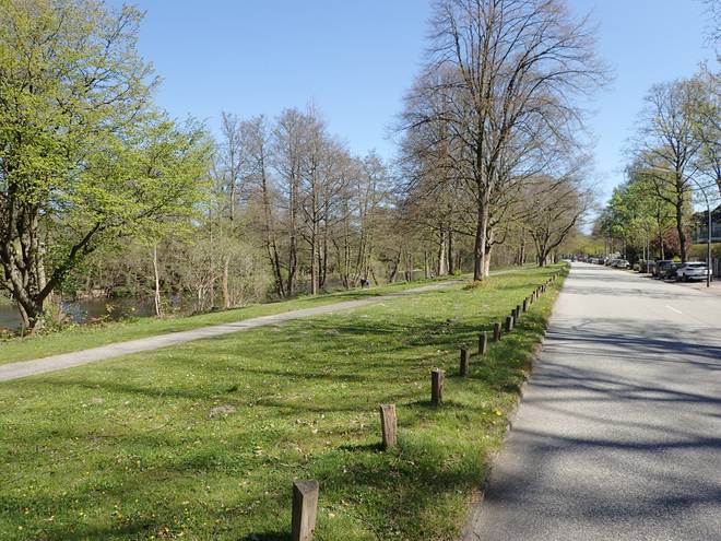 Alsterufer 2002 durfte man hier noch am US-Generalkonsulat vorbei. Seitdem ist die Straße dicht. 2000 war hier in der Nähe der Kilometer 40. |