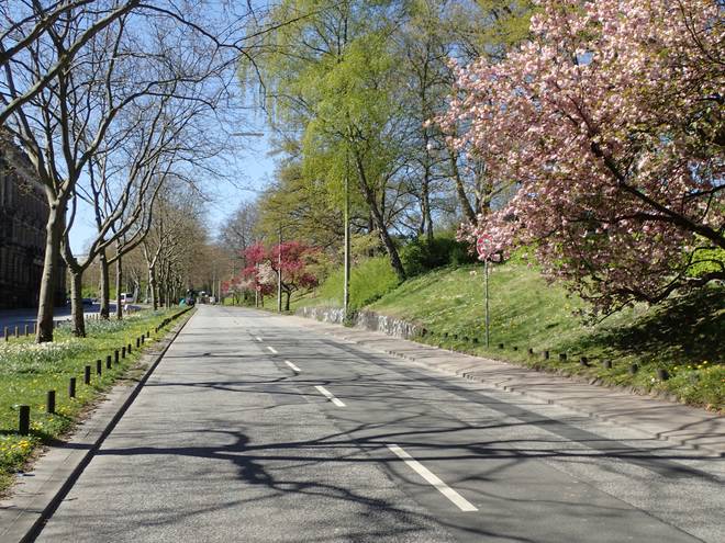 Harvestehuder Weg Eigentlich ist das hier jetzt ein Radweg, frei für Autos. Ich als Läufer hatte hier gar nichts zu suchen. Mit der Startnummer (auch auf dem Rücken) gab es aber mehr Zuspruch als böse Worte. |