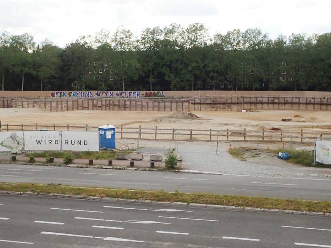 Runde 3 Von dort hatte ich einen guten Blick auf der Gelände der ehemaligen Post-Pyramide. Zwei Marathons war ich hier während des Gebäude-Abriß gelaufen. Nun war alles weg. |