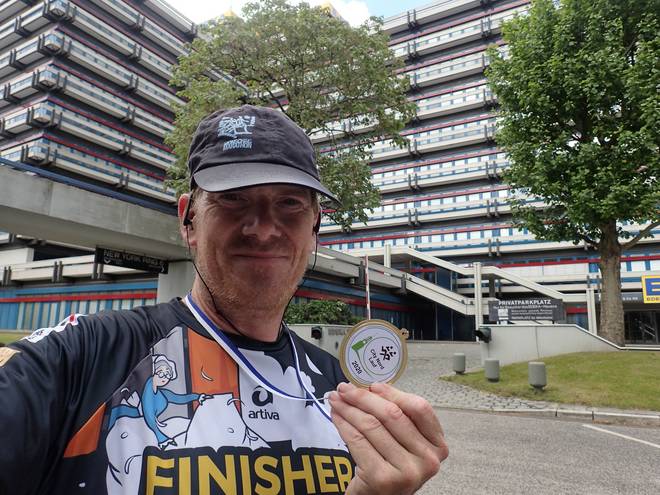 City Nord Park 15.20 Uhr 37 Minuten nach dem Finish im Hammer Park startete ich in der City Nord. Zu laufen waren drei Runden mit jeweils 3300 Metern plus 100 Metern am Ende hintendran. |