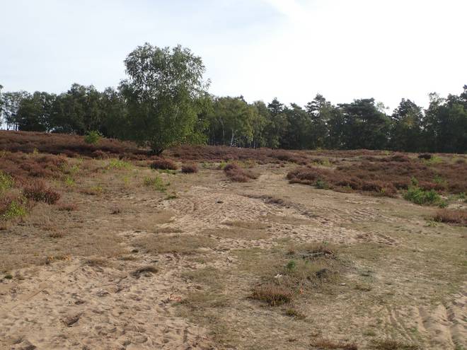 Ehemaliger Panzerübungsplatz Nun mußte ich doch vermehrt auch wandern. Das hügelige, teils auch sandige Gebiet ließ nichts anderes zu. |