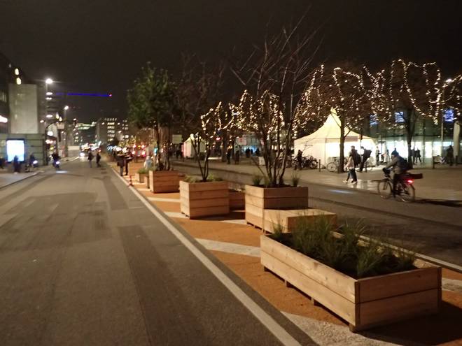 Jungfernstieg. Gefährliche Ecke. Nach der "Verkehrsberuhigung" rasen hier die Radfahrer wie die Wahnsinnigen. Ampel-Rot ist denen auch unbekannt. Man sollte die Fußgänger-Ampeln zur Sicherheit abbauen. Die geben Fußgänger den irrige Glauben, sie könnten ohne Gefahr über die Straße. Nö. Ampeln helfen nur bei Autos und Bussen. |