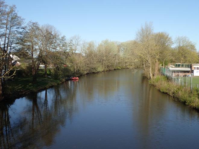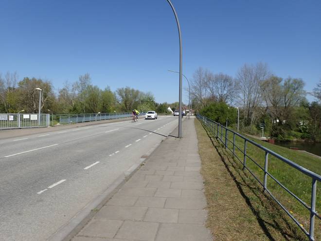 Odemann Brücke 8.53 Uhr Start meines ersten virtuellen Marathons war direkt auf der Odemann Brücke über der Dove-Elbe. |