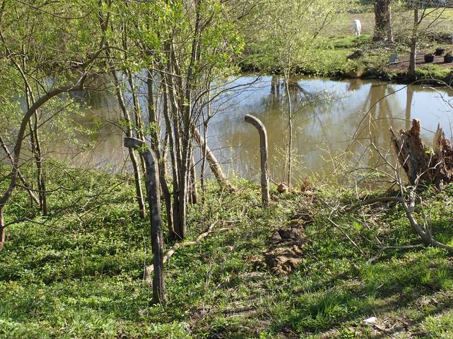 Neuengammer Hausdeich Hier steht zwei Zaunpfähle des KZ Neuengamme. |