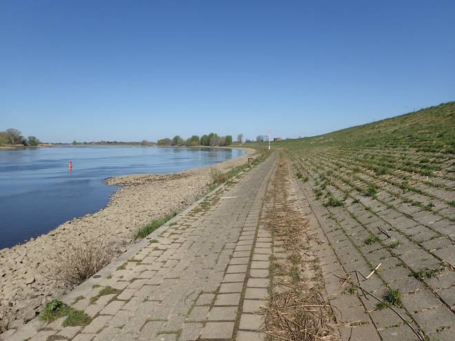 Neuengammer Hauptdeich Nun kam der Deich an der "richtigen" Elbe. Der war deutlich größer und ähnelte weit mehr dem, was man sich allgemein unter einem Deich vorstellt. Ich folgte der Elbe nun bis Kilometer 23,2. |
