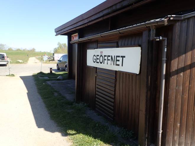 Am Hohendeicher See Tatsächlich gab es eine aus Versehen nicht verschlossene Toilette und einen geöffneten Imbiß. Minimalplan erfüllt. Ich holte mir einen Becher Coca-Cola, danach ging es weiter. |