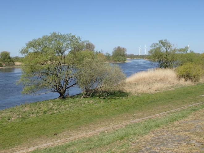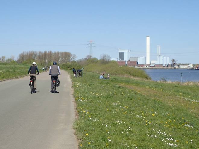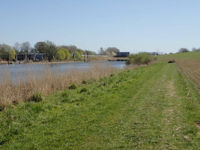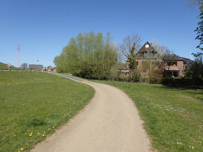 Curslacker Deich Weiter ging es auf dem Deich nördlich der Dove-Elbe. |