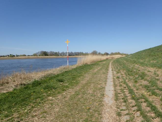 Gauerter Hauptdeich Kilometer 23,2. Hier war der Teil zu Ende, den ich an der Elbe entlang lief. Es folgten 5,8 Kilometer an der Norderelbe. |