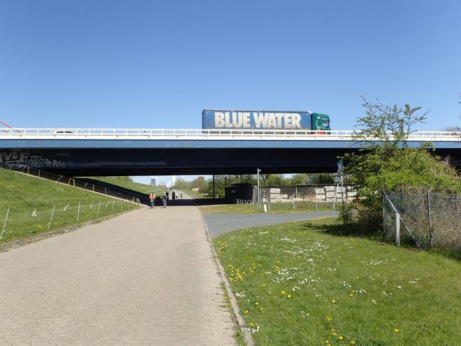 Billhorner Brückenstraße ... und mit dieser Brücke über den Oberhafenkanal. Voraus die Neue Elbbrücke, aber so weit lief ich nicht geradeaus. |
