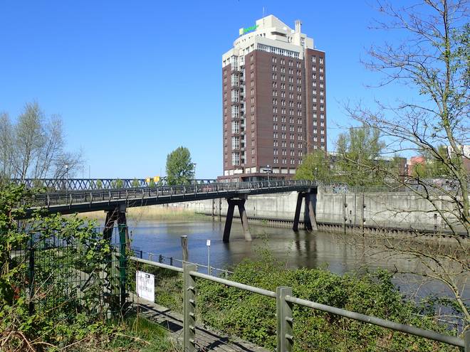 Elbpark Entenwerder Holiday Inn Hamburg Mit diese Brücke ging es über den Haken... |