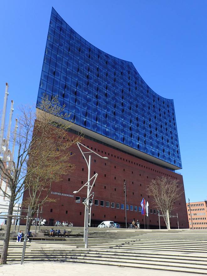 Platz der Deutschen Einheit Ich lief an der Elbphilharmonie vorbei. Ein eindrucksvolles Gebäude, besonders von hier unten betrachtet. |