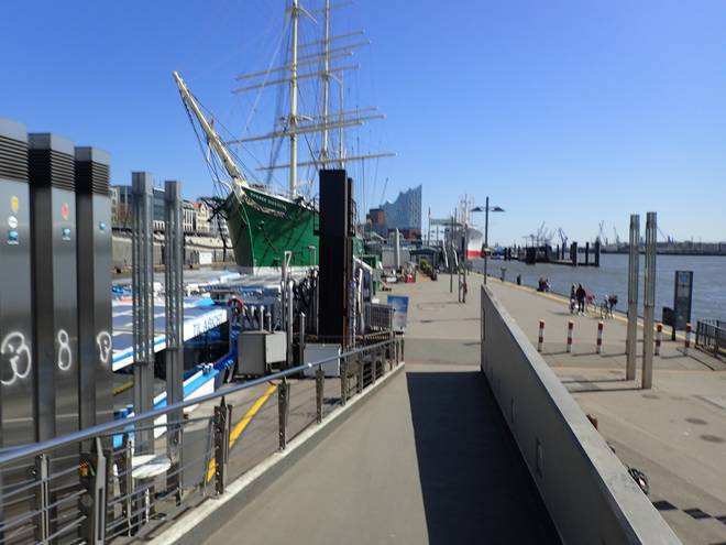 St. Pauli-Landungsbrücken Brücke 1 ... bis zum geplanten Ziel vor die "Rickmer Rickmers". |