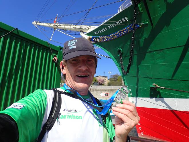 Elbpromenade Johannisbollwerk Immer noch lief alles gut. Das würde noch deutlich unter 4:50 Stunde zu Ende gehen. |
