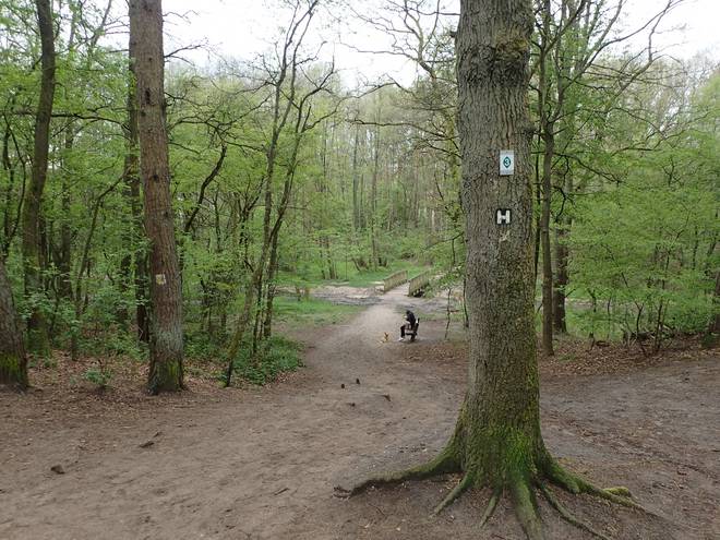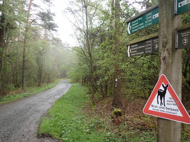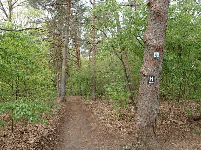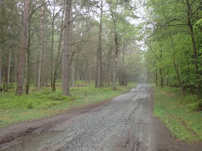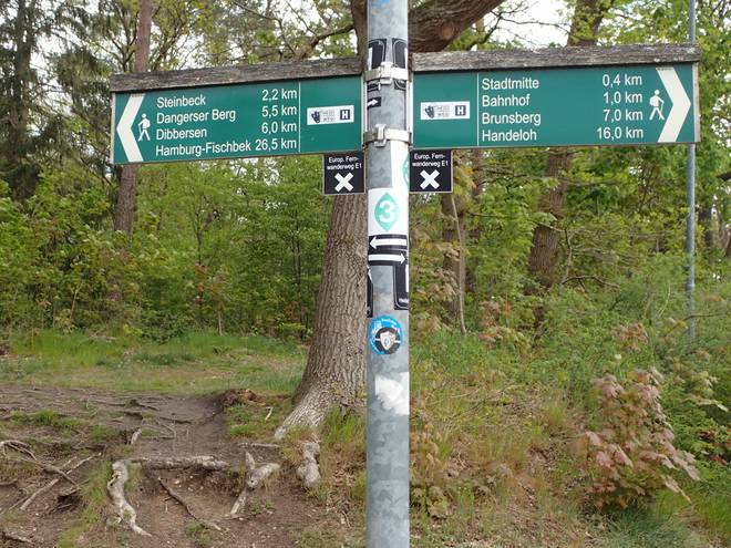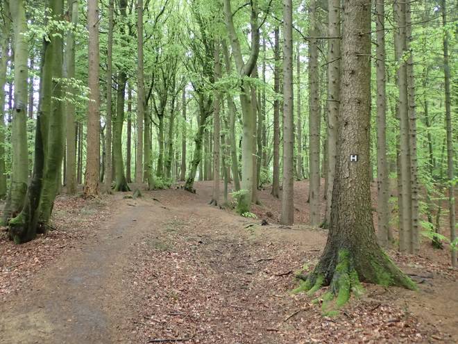 Drangesener Weg Stuvenwald Da ich es im Regen ohnehin nicht nutzen konnte, packte ich das Handy ein. Ab nun verließ ich mich alleine auf die "H"'s und die Schilder. |