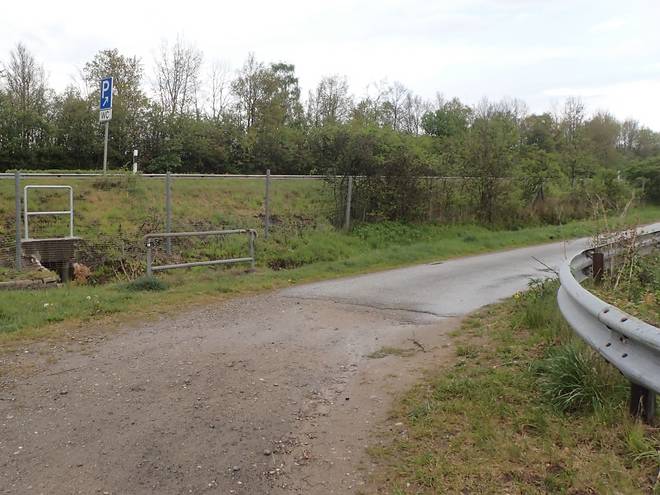 Autobahn A261 Wenn ich ein Klo gebraucht hätte, da kam eines. Ob man aber den Autobahn-Parkplatz von dieser Seite aus erreichen konnte? Ich probierte es nicht aus. |