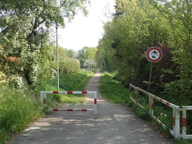 Grünberger Straße Henstedt-Ulzburg Vielleicht hätte ich mich lieber an die tatsächlichen Straßen halten sollen und nicht blind an alles, was bei Komoot als Weg markiert wurde. |