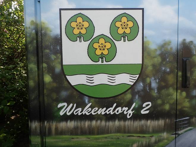 Naher Straße Wakendorf II Ein bemalter Stromkasten. Erinnerte mich an Grönland (auch Schleswig-Holstein). |