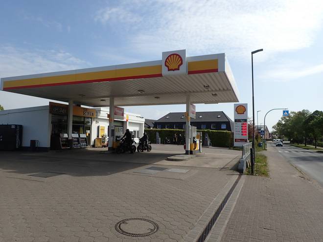 Dorfring Wilstedt Kilometer 17,3. Die Tankstelle hatte ich für die Verpflegung eingeplant. Ich holte mir eine Flasche Coca-Cola zum sofort Trinken und dazu eine Flasche Orangensaft. Da wanderte in den Rucksack, der nun recht schwer war. Erstaunlich war, wie identisch die gelaufene Distanz mit den vorab geplanten Kilometern war. Schon bei Kilometer 10 und 15 lag ich maximal nur 50 Meter daneben. |