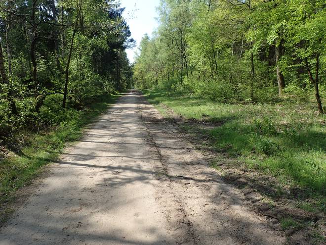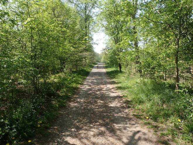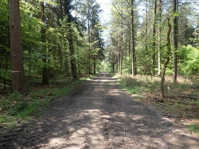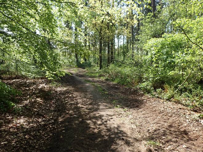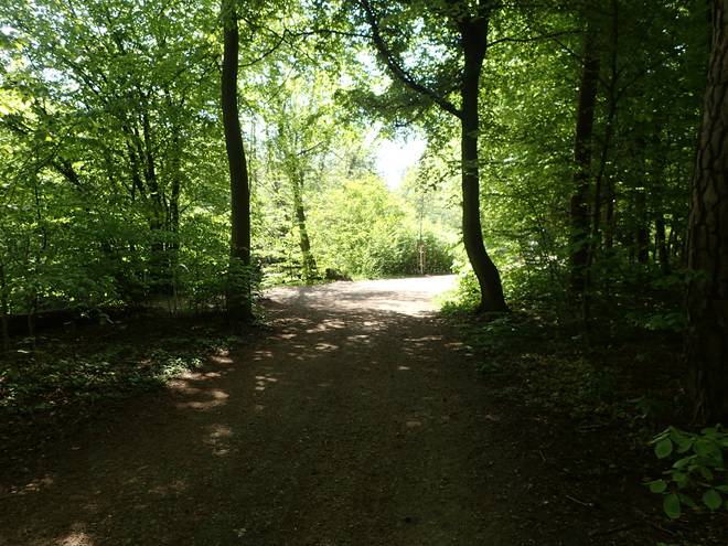 Tangstedter Forst Nach 2,6 Kilometer immer nur geradeaus an der Straße ging es nun in den Wald. |