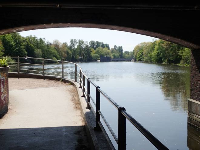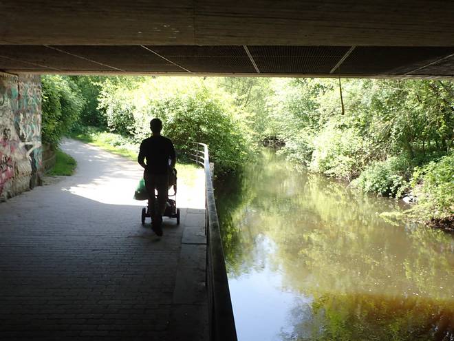 Sengelmannbrücke Alsterwanderweg (Neben der Rathenaustraße) Nun ging es mit den Kräften aber deutlich in den Keller. Unter anderen Umständen ginge ich sicherlich in eine Wanderphase über, aber nur drei Kilometer vor dem Ziel wollte ich das nicht. |