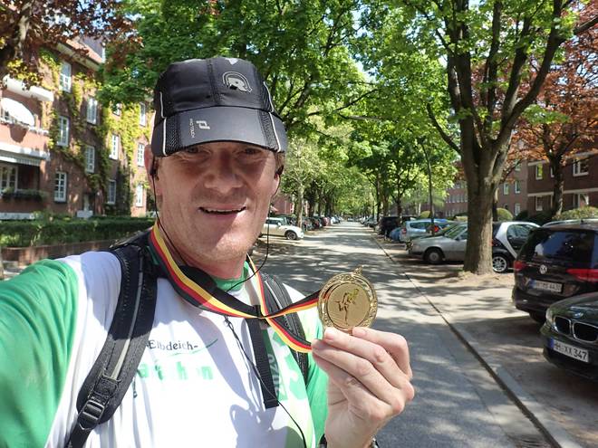 Tangstedter Forst 2:22:03 Stunden. Das deutete auf ein Finish noch unter fünf Stunden hin. Das machte 6:44 Min/Km rein brutto. Nimmt man die Pausen raus, lief ich knapp schneller als 6:30 Min/Km. |