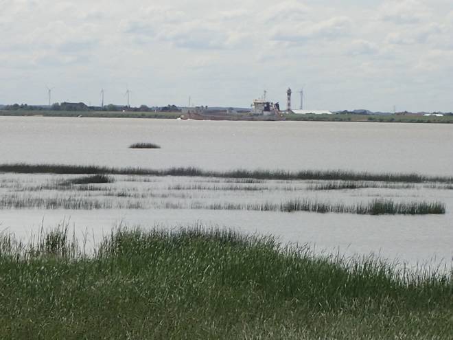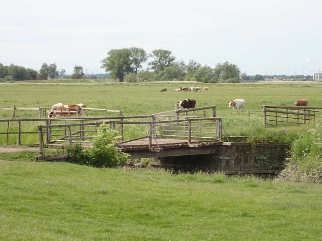 Sperrwerk Wedeler Au Zum Lüttsandsdamm Also ging es einmal über den Deich und im Landesinneren weiter. |