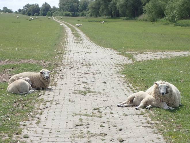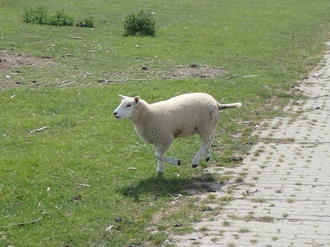 Elbedeichwanderweg Nur vereinzelt traf ich auf wirklich aktive Schafe. Dieses hier hatte es sogar richtig eilig. |