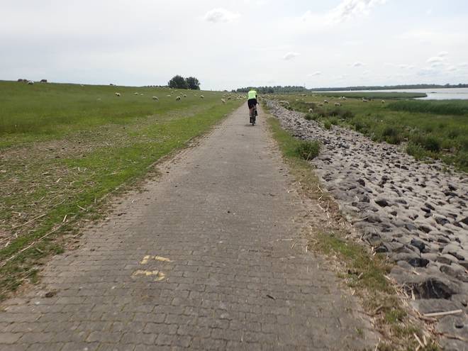 Elbedeichwanderweg Meist ging es aber auf diesem recht holprigen Steinpflaster voran. |