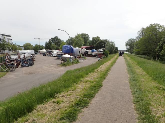 Deichstraße Wedel Aber offenbar war ich nicht der Erste, dem der Geschlossen-Erlaß scheißegal war. Wobei wirklich geschlossen war das Areal nicht, denn von der anderen Zaun-Seite kam man problemlos nach Wedel rein. Also alles reine Schikane. |