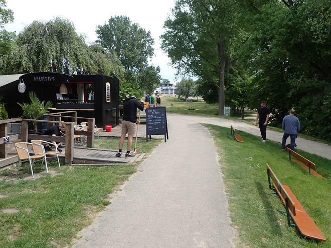 Falkensteiner Ufer 850 Meter später konnte ich am Pavillon Lütt eine Flasche Coca-Cola kaufen, ohne eine Schikanier-Zettel auszufüllen. Aber nur 0,2 Liter und auch nur, wenn ich die Cola-Flasche mitnahm. |