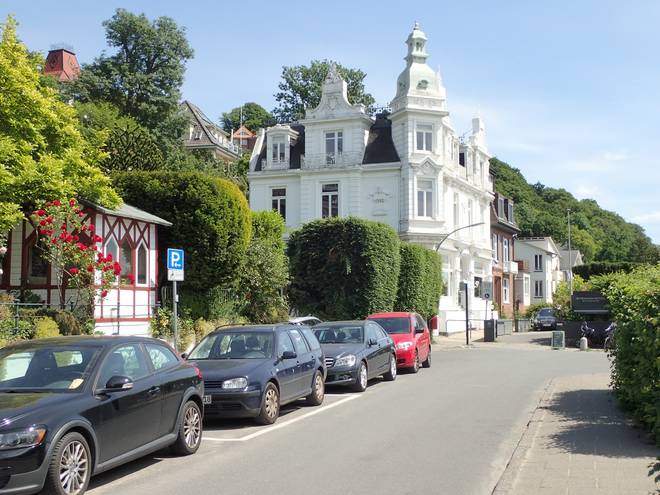 Övelgönne Auf dem schmalen Weg durch Övelgönne wurde es dann teilweise recht eng. |
