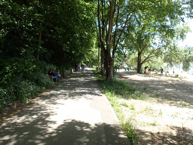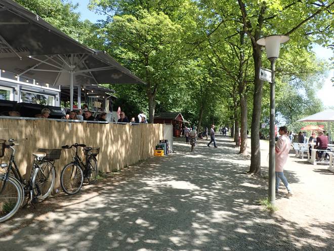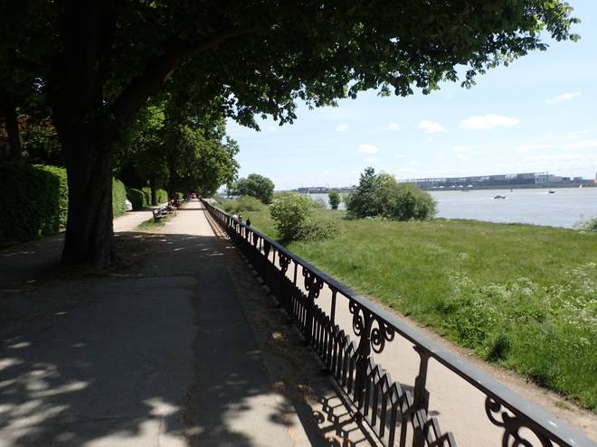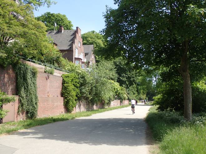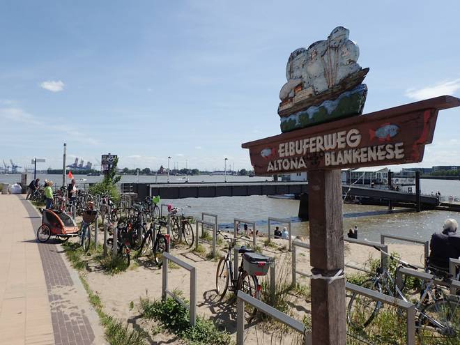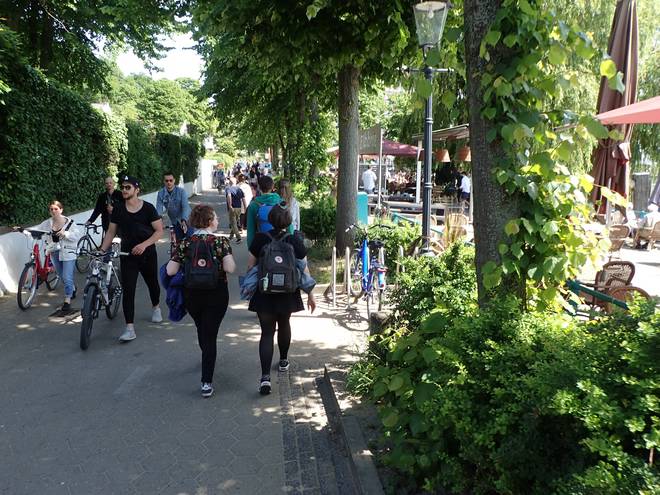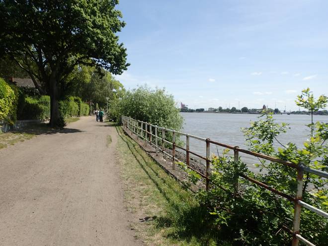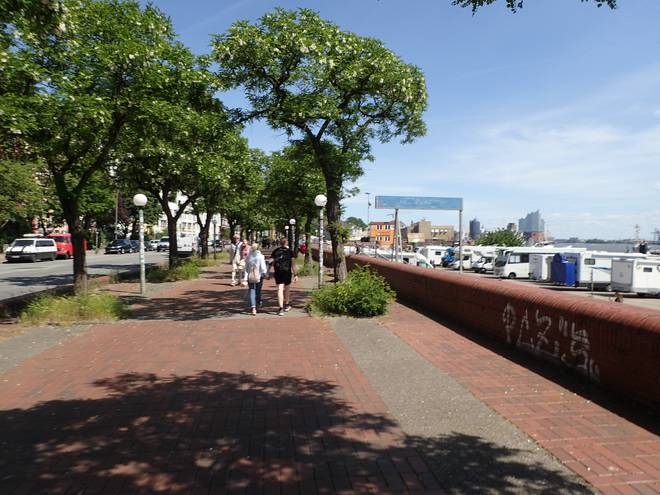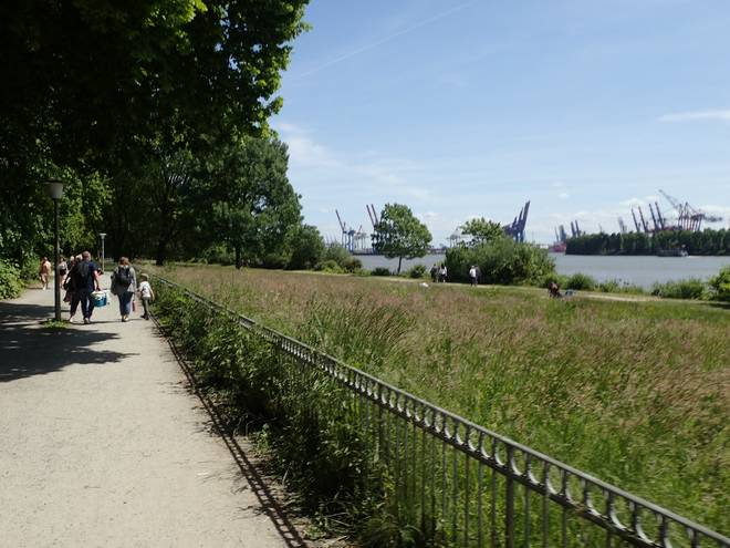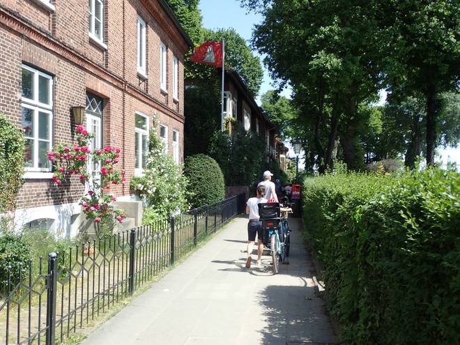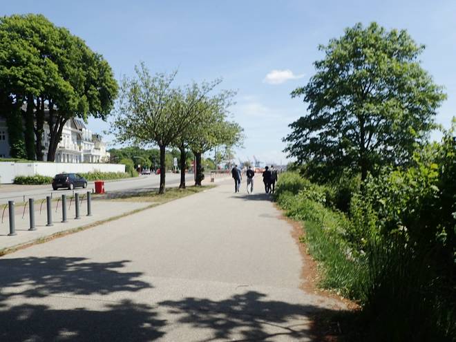 Övelgönne Man könnte hier auch entlang der Elbe am Strand laufen. Aber dort war es so voll, daß ich gar nicht voran gekommen wäre. |