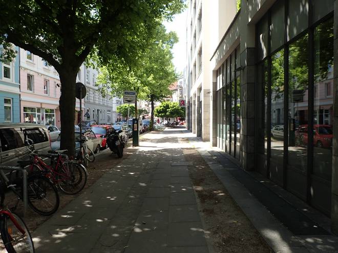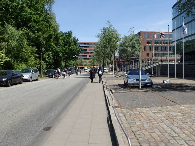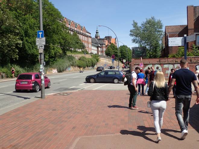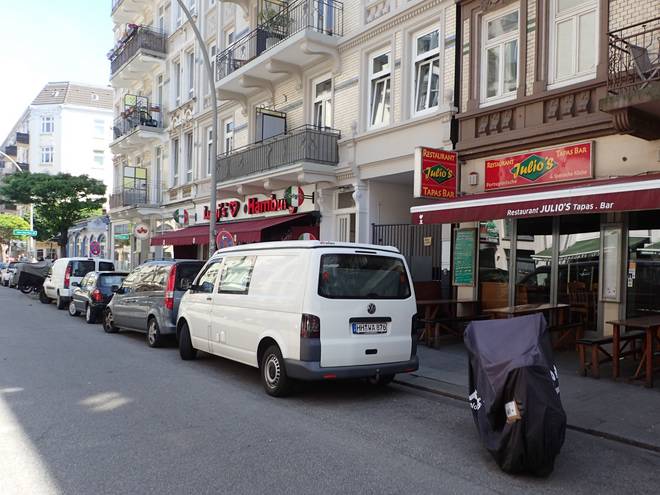 Große Elbstraße Bis Oktober 2019 gehörte die Ecke hier zu meinem üblichen Nachmittags-Lauf von der Arbeit nach Hause. "Dank" Baustellen und Absperrungen an der Außenalster mußte ich dann aber sehr weite Umwege durch die City laufen. Diese Mehr-Kilometer sparte ich durch eine Abkürzung weiter nördlich von hier wieder ein. |