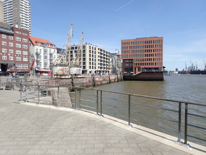 Am Altonaer Holzhafen In der Ferne waren schon die Landungsbrücken und die Kehrwiederspitze zu sehen. So weit mußte ich gar nicht mehr laufen. |