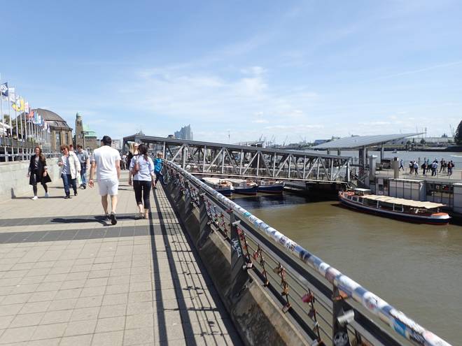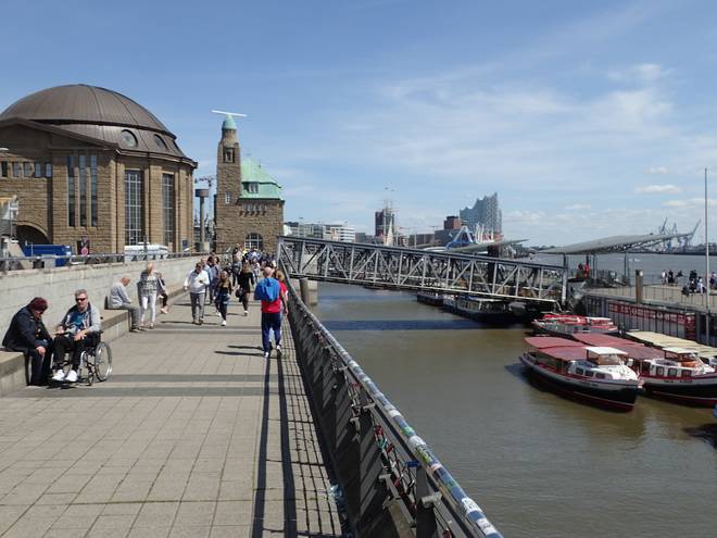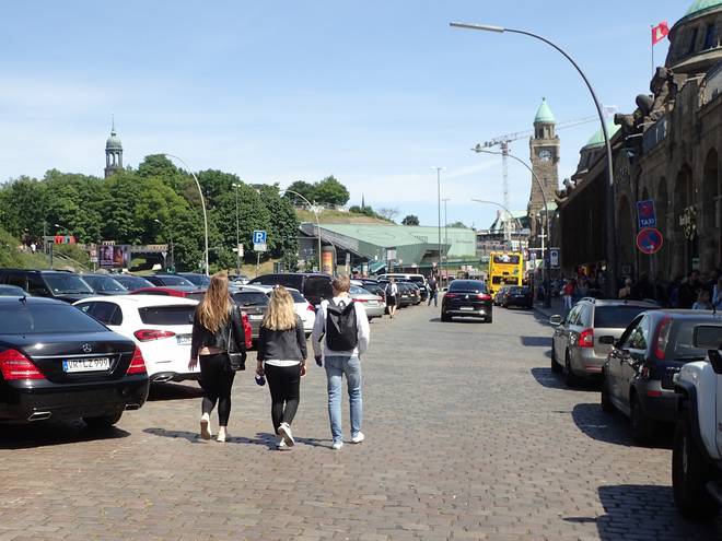Bei den St. Pauli Landungsbrücken Links voraus die U/S-Bahn Haltestelle Landungsbrücken. |