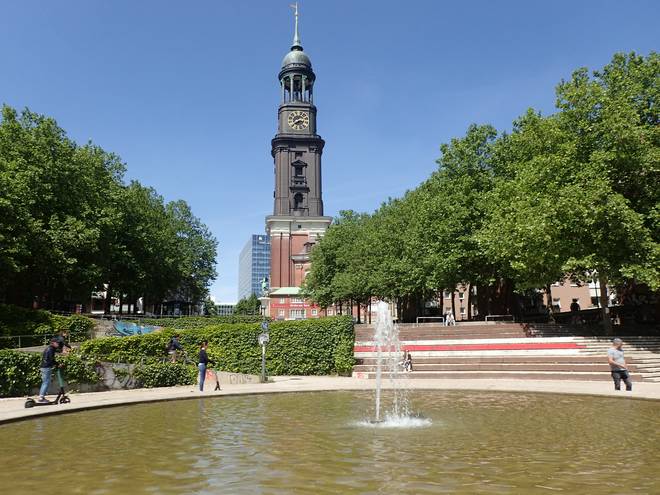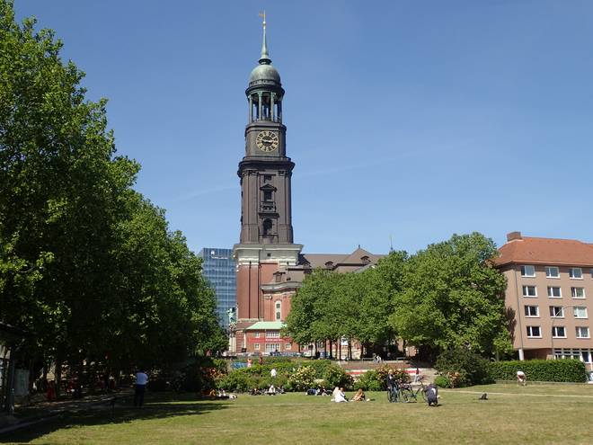 Hauptkirche St. Michaelis Michel-Wiese 14.47 Uhr Es war ein wirklich schöner Lauf, trotz der ganzen Corona-Idiotien. Danach ging es auf kürzesten Weg zum nächsten Kiosk. Bis zur S-Bahn hatte ich mehr als einen Liter getrunken. |